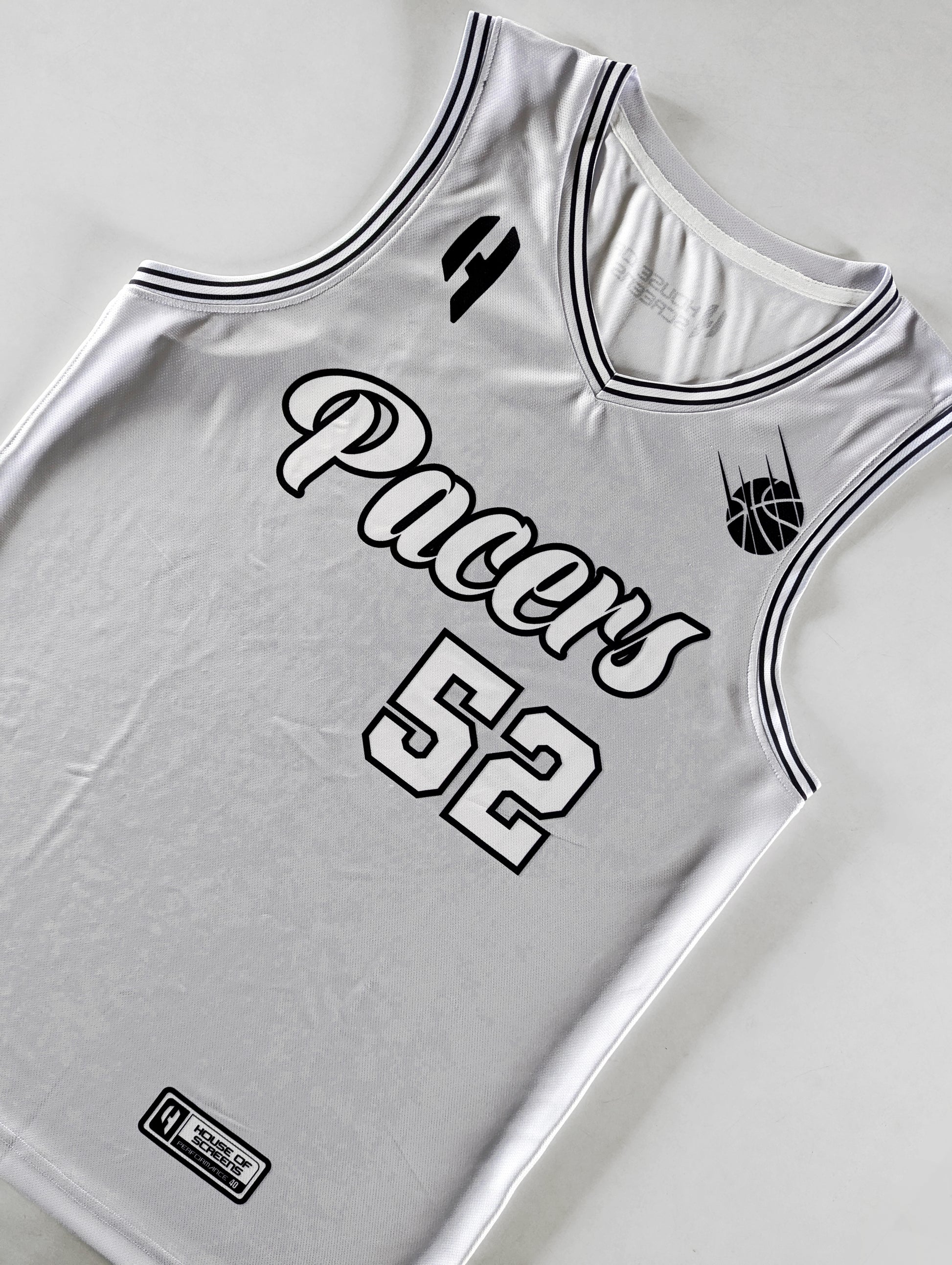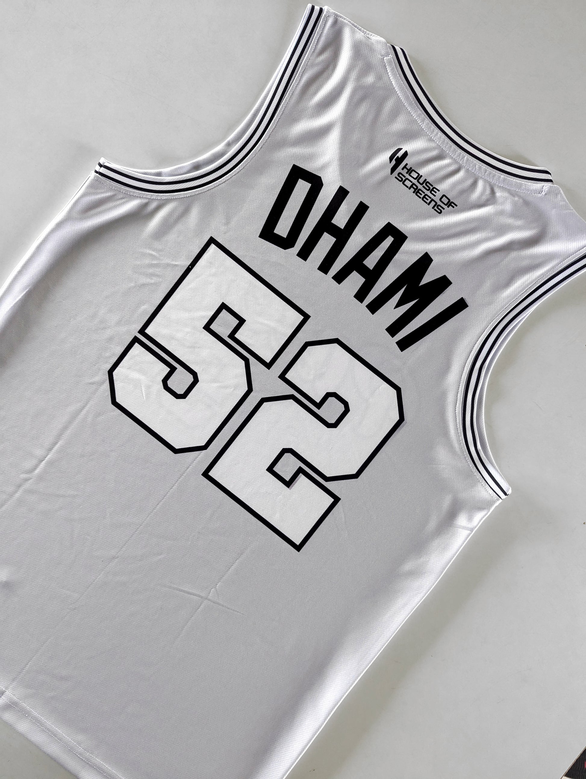 Note: This design was made for another team. You'll receive the same design without the logo displayed on the chest. It'll be printed with a team name of your choice, along with the player name and number and back above the name will have House of Screens branding. It'll be in the format below